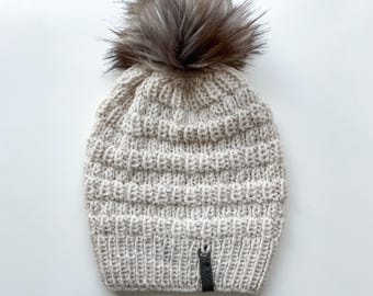 Ribbed Slouchy Beanie PATTERN//Faux Fur Pom Beanie PATTERN//Crochet Beanie//Instant Download//Skill Level: Beginner/Easy//Written Tutorial